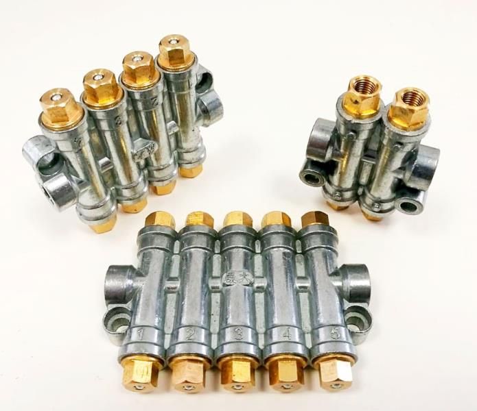 Отличительной особенностью дозаторов данного типа является наличие визуального контроля подачи смазочного материала в систему, по каждому каналу (детекторный пистон).