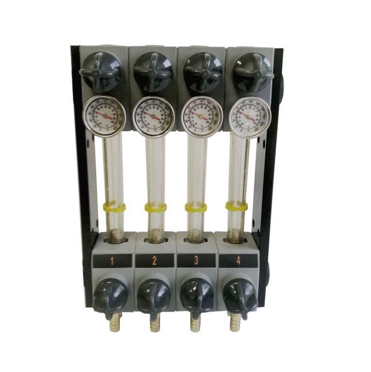 Двенадцатиканальный ротаметр — это измерительное устройство, предназначенное для одновременного визуального контроля расхода жидкости в Двенадцати независимых контурах системы. Он объединяет в себе Двенадцать отдельных ротаметров в одном корпусе, обеспечивая компактное и удобное решение для мониторинга расхода охлаждающей жидкости или других рабочих сред в многоканальных системах, таких как системы охлаждения пресс-форм термопластавтоматов (ТПА), где требуется индивидуальный контроль расхода для каждой зоны охлаждения. Двенадцатиканальный ротаметр позволяет оператору быстро выявлять отклонения от нормы в каждом контуре и оперативно принимать меры для поддержания оптимального режима работы оборудования.